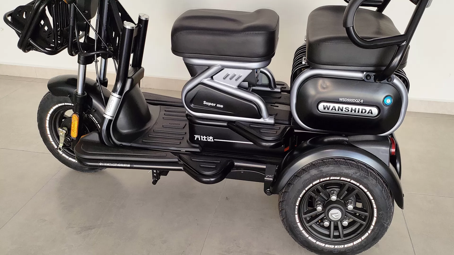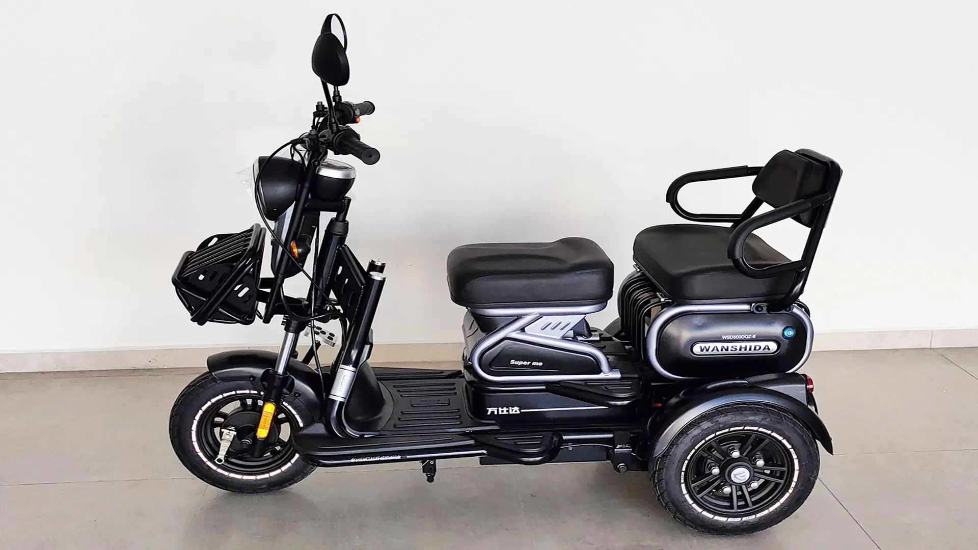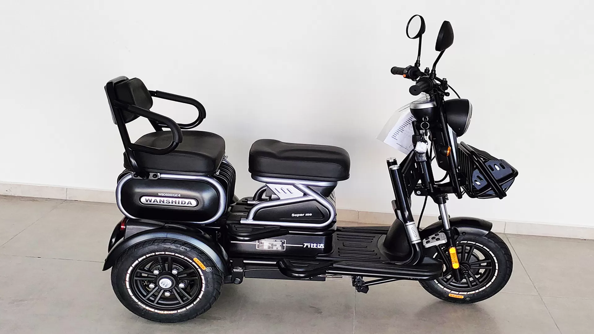 O triciclo Wanshida 800W com bateria de lítio é um modelo específico de triciclo elétrico que oferece uma potência de 800 watts e utiliza uma bateria de íon de lítio como fonte de energia. Aqui estão algumas informações sobre este triciclo elétrico: